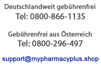 MypharmacyPlus ist Deutschlands Nummer 1 Anbieter von Generika- und Markenarzneien – erhältlich sogar ohne ärztliches Rezept. Wir bieten einem großen Teil der deutschen Gesellschaft Medikamente gegen erektile Dysfunktion an, sowie Hautpflegeprodukte und Diätmittel – und das Ganze zu bezahlbaren Preisen. Wir bieten gleichzeitig unseren Kunden eine schnelle und diskrete Online-Bestellung und eine zuverlässige und schnelle Zustellung derjenigen Produkte, die Sie für Ihre ganz persönliche Behandlung benötigen.